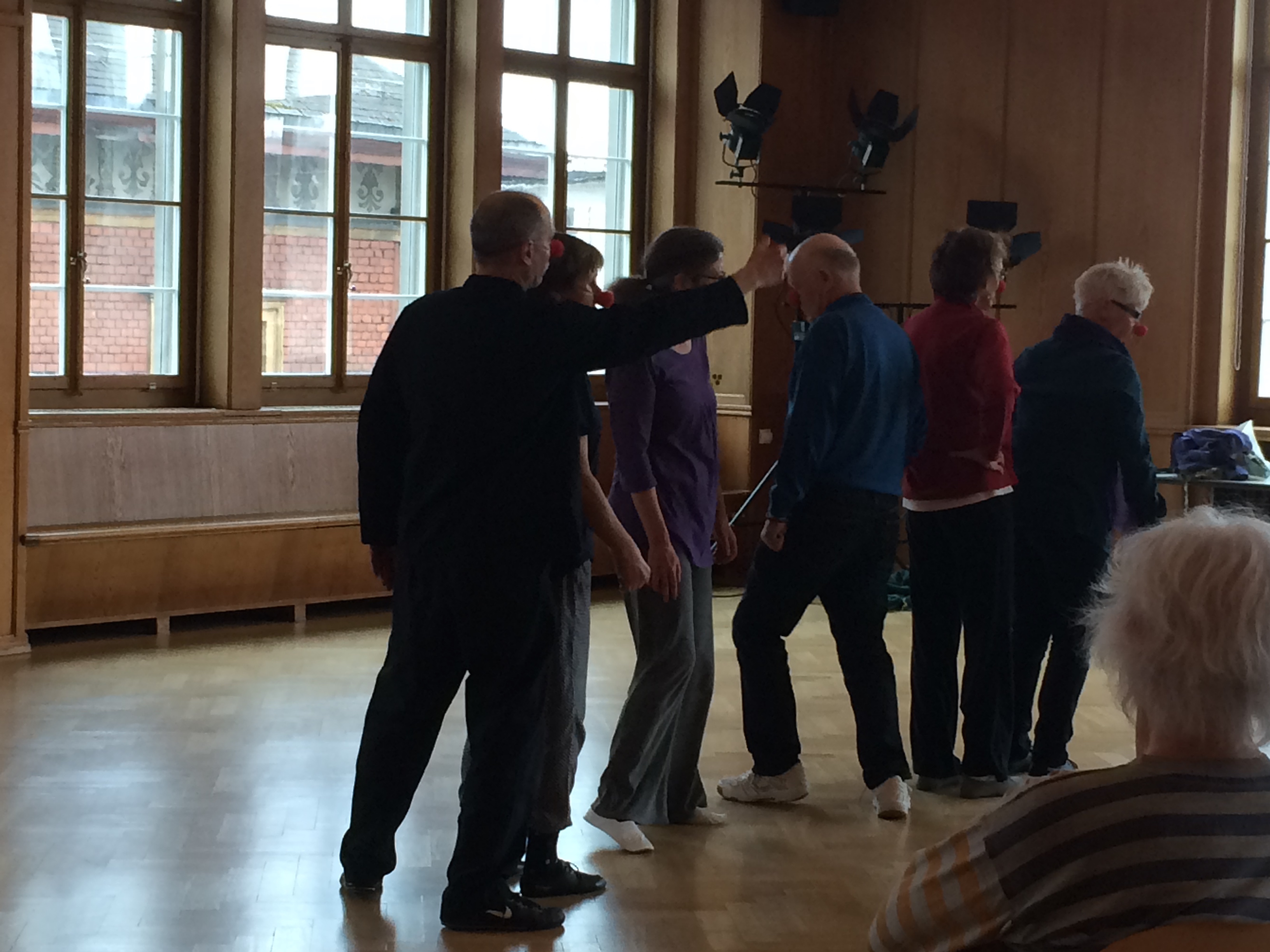 IMG_0673Clownsworkshop in Zürich. Wir stolpern und staunen, staunen und stolpern miteinander. Auch und immer wieder über Bibelverse. Eine ganze Gruppe steht auf der Bühne. „Ihr seid Clowns, ihr habt keine Ahnung aber seid gern da. Und jetzt würden wir gerne sehen, wie das geht, die Letzten werden die Ersten sein und die Ersten die Letzten.“ Und dann gerät ein Bibelvers in die Bewegung. Ins Gerangel, in die Vorführung von allen möglichen Techniken, hinten gegen vorne zu tauschen, die Richtung der Menschenschlange umzukehren, sich so hindurch zu drängeln, dass die anderen gar nicht merken, wohin man unterwegs ist, wieder von vorne anzufangen, immer wieder unterschiedliche Siege zu feiern, mal zu glauben, man wäre letzter tatsächlich jetzt erster und umgekehrt. Manche wählen eine geschickt höfliche Form, bieten allen den Platz vor ihnen an, um sich dann ganz schnell herum zu drehen und als erste da zu stehen. Merkt leider nur keiner.
