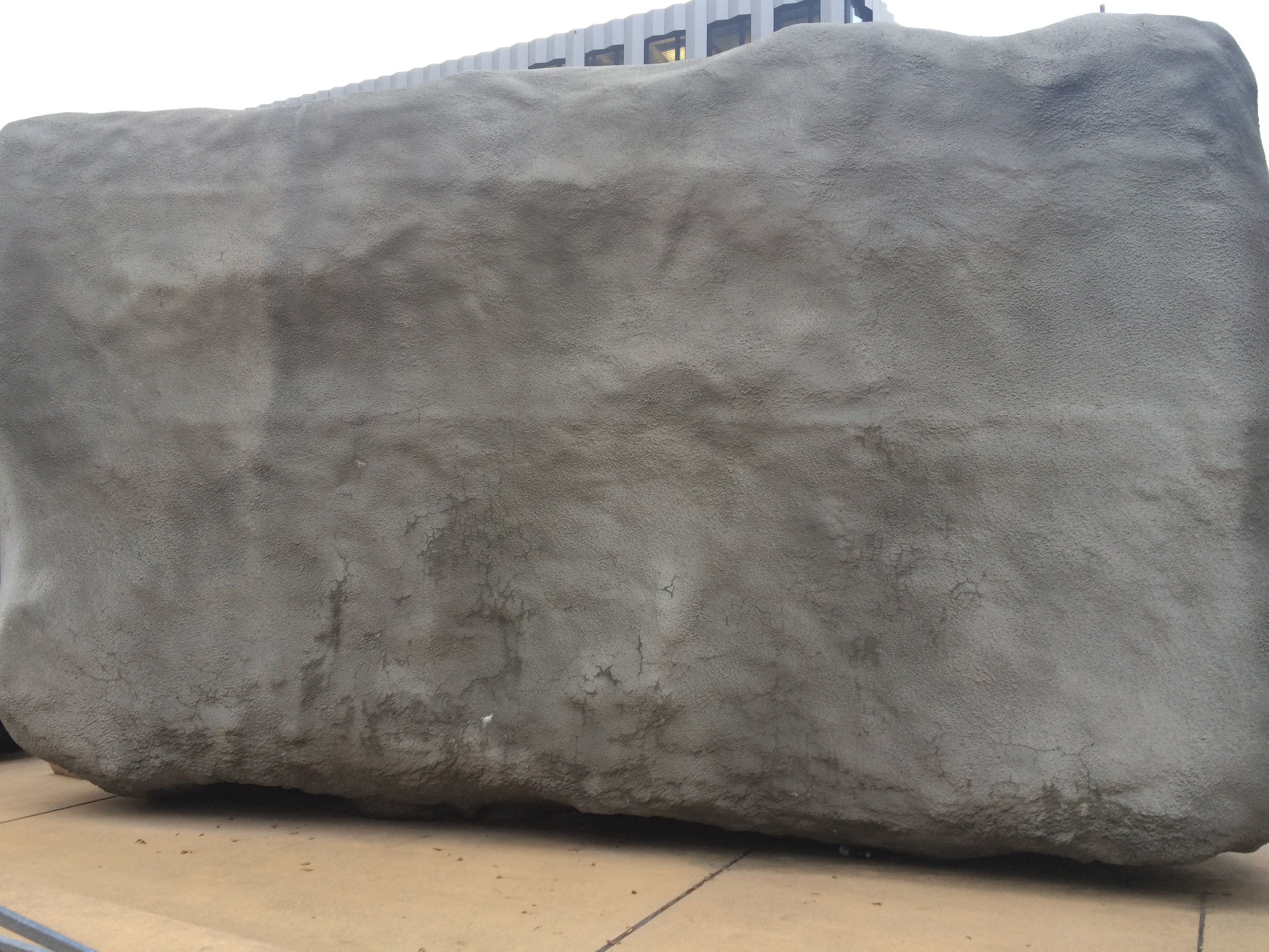 Der Stein, so finde ich heraus, ist Konzept, realisiert durch die Mobimo AG. No Problem Sculpture heisst er, der Künstler Not Vital hat ihn gemacht. Sein Umfang ist so gross wie der Mobimo-Turm neben ihm hoch ist, 81 Meter. Zu ihm gibt es ausserdem ein Pendant, in Niger wurde ein Brunnen gegraben, 81 Meter tief. Mit diesem Kunstwerk wird Verbindung hergestellt, zwischen Kreis 5 in Zürich, und Afrika. OMIBOM hat der Künstler den Brunnen genannt. Nur wenig Sand vom Brunnenaushub ist in im Koloss versteckt. Eine Hinweistafel suche ich vergeblich.