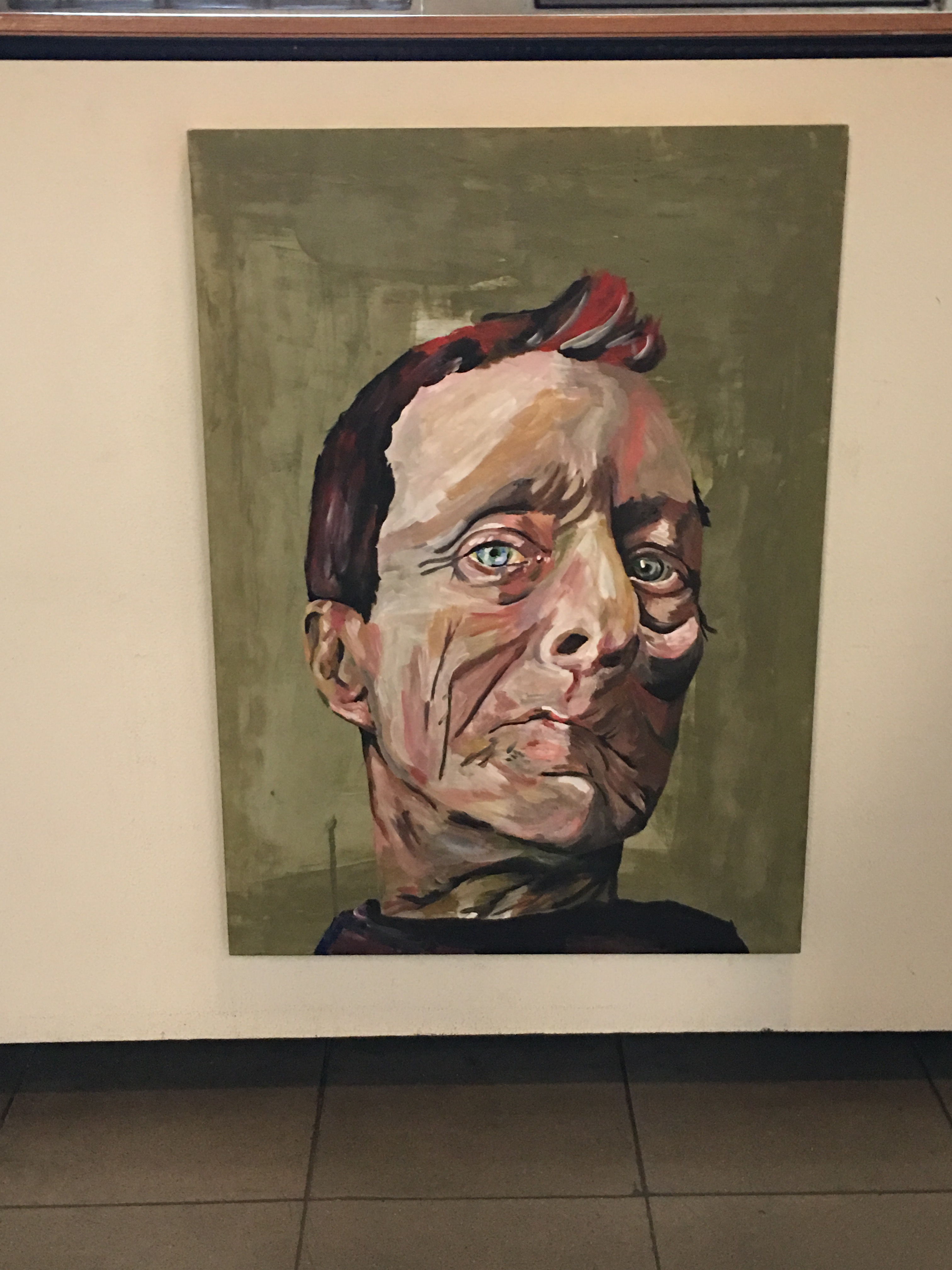 Schön ist er ja nicht. Nicht auf den ersten, nicht auf den zweiten Blick. Eigen könnte man ihn nennen. Genauso wie die junge Frau auf violettem Hintergrund. Sie und noch einige mehr hängen seit einigen Wochen in meiner Gemeinde, der Johanneskirche in Zürich. Es sind Porträts von Menschen, wie sie tagtäglich am nahen Limmatplatz unterwegs sind. Es sind Leute aus dem Viertel, manche ganz originalgetreu in ihren Zügen, alle dennoch ein bisschen verfremdet. Jennifer Zimmermann hat, das war ihre Absicht, die Leute von draussen in die Kirche geholt. Schön sind sie nicht. Jedenfalls nicht auf die ersten beiden Blicke. Einige ärgern sich darum schon, dass sie immer noch da sind, mehrere Wochen nach einer Kunstausstellung.